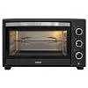электропечь, металлическая решетка, плоский противень, ухват для противня, форма для пиццы, вертел для гриля, ухват для вертела, вертел для шашлыка/кебаба, антипригарный коврик для выпечки, гарантийный талон, инструкция на русском языке